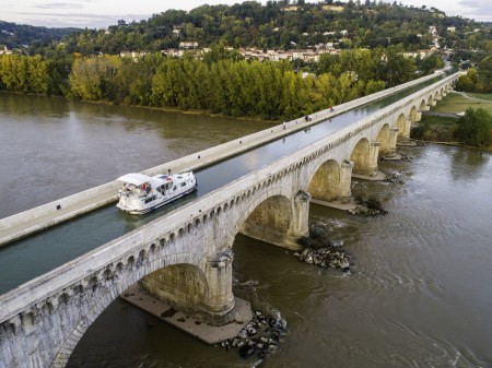 En 1833, dans le prolongement du canal du Midi, un canal latéral à la Garonne est projeté jusqu'à Bordeaux pour optimiser la navigation sur ce fleuve. Le projet est confié à l'inspecteur des ponts et chaussées Jean-Baptiste de Baudre et à l'ingénieur Job. Long de 540 mètres (le second plus long de France), le Pont-Canal comprend 23 arches d'une ouverture de 20 mètres et d'une hauteur de 10 mètres. Le Pont Canal est mis en service en mars 1856.